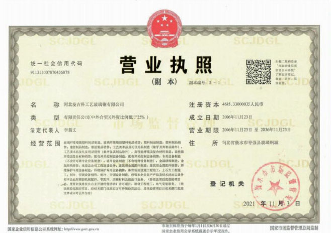 1. 河北曼吉科工藝玻璃鋼有限公司